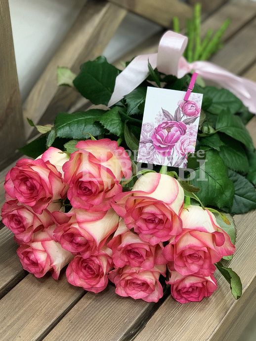 11 розовых роз под ленту 3950 Оформить заказ Размер: высота роз ~60-70 см Состав: розы сорта Джумилия, 11 шт. лента атласная открытка (при необходимости) *дизайн открытки к букету может отличаться от представленной на фото Размер: высота роз ~60-70 см Состав: розы сорта Джумилия, 11 шт. лента атласная открытка (при необходимости) *дизайн открытки к букету может отличаться от представленной на фото С цветами можно подарить:Конфеты "Ferrero Rocher"1 200 ₽ Мишка "Веня"1 400 ₽